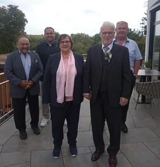 Zu den ersten Gratulanten des Ehepaars Schlicht aus Freilingen gehört ein Sohn und eine Tochter mit Ehepartnern sowie drei Enkelkindern. Den Gratulationen schließen sich auch der Bürgermeister der VB Vordereifel Alfred Schomisch, Kreisbeigeordneter Jens Firmenich sowie die Ortsgemeinde Baar, vertreten durch den 1. Beigeordneten Markus Schmitt, an und wünschen den beiden Jubelpaaren noch viele gemeinsame Jahre bei bester Gesundheit.