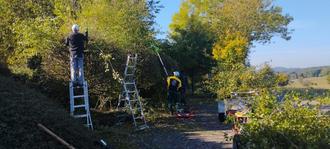 Auf dem Friedhof wurden u. a. die Bäume rund um den Parkplatz gepflegt, sodass dieser nun wieder gut und sicher genutzt werden kann.