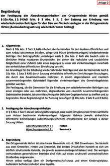 (1) Sämtliche zum Anbau bestimmte Verkehrsanlagen folgender Gebiete bilden jeweils einheitliche öffentliche Einrichtungen (Abrechnungseinheiten), wie sie sich aus dem als Anlage 1 beigefügten Plan ergeben.