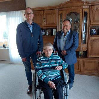 Zu diesem besonderen Ereignis gratulierten auch der Bürgermeister der Verbandsgemeinde Vordereifel Alfred Schomisch und Ortsbürgermeister Rainer Wollenweber. Beide überbrachten die Glückwünsche der Verbands- und Ortsgemeinde und wünschten der Jubilarin noch weitere schöne Jahre und vor allem Gesundheit.