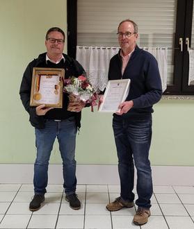 Der herausragende sportliche Erfolg veranlasste den Gemeinderat zu einer besonderen Ehrung. Vor der Gemeinderatssitzung am 15.11.2022 wurden ihm von Ortsbürgermeister Rainer Wollenweber eine Urkunde, ein Gutschein des örtlichen Büchsenmachergeschäftes sowie weitere Präsente übergeben.