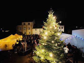 Blick vom Bürgerhaus auf das Weihnachtsleuchten