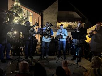 Michael Schäfer war es auch, der sechs seiner Musikkameraden eingeladen hatte. Gemeinsam trugen sie zur vorweihnachtlichen Stimmung bei, indem sie Weihnachtslieder auf ihren Instrumenten spielten.