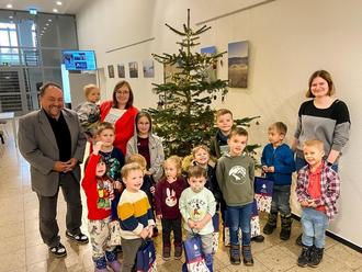 Kürzlich sind Monrealer Mädchen und Jungen auf Einladung von Bürgermeister Alfred Schomisch zu Gast im Rathaus der Verbandsgemeinde Vordereifel gewesen. Die Kinder aus der Kita Monreal haben mit viel Eifer und Freude bunte Kugeln, glitzernde Sterne und selbstgebastelte Anhänger am Weihnachtsbaum im Flur des Meldeamtes verteilt.
