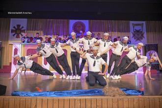 Aber das war längst nicht alles! Nach einer kurzen Pause ging es weiter. Die Hochsimmergarde Ettringen (Trainerin: Lisa Klein) bot eine atemberaubende Show aus Gardetanz, Paartanz und Gesang, das Männerballett Anschau stach als „12 Männer auf hoher See - Titanic“ (Trainerin: Steffi Schulz) in See und die Kfd Partyelfen verzauberten mit „Im Himmel ist der Teufel los“ (Trainerin: Alexandra Ott-Foraiter) das Publikum. Das Herrenzimmer unter dem Motto „Actionfilm“ (Trainerin: Denise Böhm) begeisterten alle Zuschauer.
