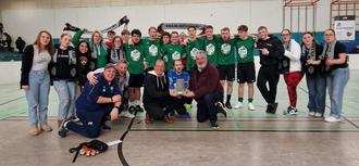 Die „Gelobten“ waren die SG Eintracht Mendig und das Team „Vulkan Hopfensport“, die ein rundum gelungenes Hallenturnier organisiert hatten. Im Rahmenprogramm des Turniers gab es an jedem Tag eine – federführend von Michaela Klapperich, Team „Vulkan Hopfensport“, organisierte – große Tombola, deren Erlöse zu 100 Prozent der Kinderkrebsstation des Kemperhofs in Koblenz zu Gute kommen.