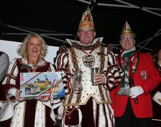 Oberbürgermeister Dirk Meid überreichte Geschenke an Prinzessin Martina I. und Prinz Peter V.