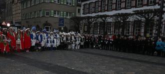 Rückblick: Nachdem diese in den vergangenen Jahren traditionsgemäß im Saal des Neuen Rathauses und in der vergangenen Session in der Innenstadtlokalität dem Basalt 25 stattfand, hatte die Alte Große Karnevalsgesellschaft – hierbei handelt es sich um den Dachverband der Mayener Faasenacht - für diese Zeremonie nun den Marktplatz auserkoren. Um es gleich vorneweg zu sagen.