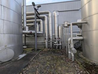 Fernwärmeleitungen an der Wärmeübergabestation der Fernwärme Mayen