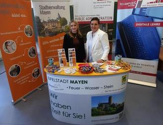 Mayen. Die Mayener Ausbildungsmesse (MAYA) wurde kürzlich bereits zum zweiten Mal von der Carl-Burger-Schule in deren Räumlichkeiten durchgeführt und lockte viele interessierte Schülerinnen und Schüler an. Auch die Stadt Mayen war vor Ort vertreten und stand als Ansprechpartner für Fragen und Anregungen rund um die Ausbildung zur Verfügung. Mit Ihrer Anwesenheit hat die Stadt Mayen auch die Hochschule für öffentliche Verwaltung (HöV) vertreten, da alle Studierenden und Auszubildenden des zweiten und dritten Einstiegsamtes an der HöV die theoretischen Ausbildungsinhalte vermittelt bekommen.