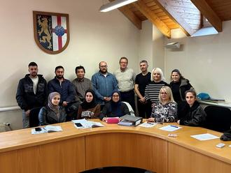 „Ich wünsche Ihnen für die Prüfung viel Glück. Sprache öffnet viele Türen und erhöht nicht zuletzt die Möglichkeit einen Arbeitsplatz zu finden“, so Joachim Plitzko, 1. Beigeordneter VG Mendig, beim Besuch einer Kursstunde in Vertretung von Jörg Lempertz, Bürgermeister VG Mendig. Plitzko stellte im Rahmen des Unterrichts die Aufgaben der kommunalen Verwaltung vor und beantwortete Fragen der Teilnehmerinnen und Teilnehmer. Eine praxisorientierte Übung für die Männer und Frauen.