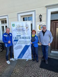 2024 konnte die LG Laacher See 2.145 Aktive zum 42. Lohners Vulkan-Marathon begrüßen. "Diese hohe Teilnehmerzahl ist für uns Ansporn und Motivation und wir möchten allen Aktiven, wie auch bei unseren Lauf-Veranstaltungen am Laacher See, die gewohnte, familiäre Atmosphäre und die gute Stimmung bieten. Unser Ziel ist es, euch im Rahmen einer reibungslosen Organisation mit zivilen Preisen einen tollen Volkslauftag zu bieten. Um das zu erreichen, dem verantwortungsvollen, umweltschonenden Umgang mit dem Veranstaltungsort Rechnung zu tragen, werden wir erstmalig die Teilnehmeranzahl auf 1.800 Starterinnen und Starter limitieren"", heißt es auf der Homepage der LG. Deshalb ist eine schnelle Anmeldung sicher nicht die schlechteste Empfehlung. "Die Zahl der Teilnehmerinnen und Teilnehmer zeigt, dass der Lauf- und Walkingtag am 1. Mai ein Tag ist, der die große Wertschätzung für die LG Laacher See mehr als erahnen lässt. Und auch für die Stadt Mendig ist das Event ein sehr guter Werbeträger"", so Stadtbürgermeister Achim Grün beim Besuch von Frank Schäfer, stellvertretender Schriftführer LG Laacher See, und Anita Massion, Vorsitzende LG Laacher See, im Stadthaus.