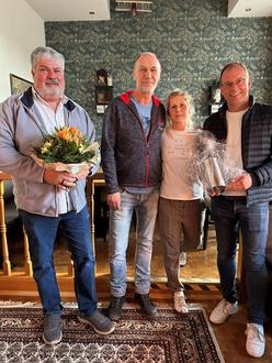 Mendigs Stadtbürgermeister Achim Grün (links) und Jörg Lempertz (rechts), Bürgermeister VG Mendig, wünschten Mario Lutter und Kamila Carová zur Eröffnung der „Ratsstuben Anderswo“ alles Gute.