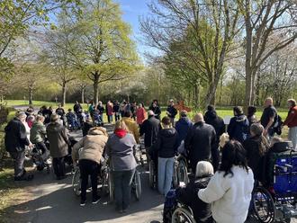 Bewohner und Mitarbeiter des Caritas Zentrums gingen am 11.04.2025 mit interessierten Gästen und einer großen Teilnehmergruppe aus dem Alten- und Pflegeheim Marienstift in Mendig gemeinsam betend den barrierefreien Kreuzweg in Obermendig. Die 15 Stationen des Kreuzwegs „Mit Jesus Christus barrierefrei auf dem Weg“ wurden von Bereichsleiterin Stephanie Pohl und Teamleiter Simon Mayer organisiert und durchgeführt. Die zwölfte Station wurde zusammen mit dem Alten- und Pflegeheim Marienstift gestaltet. Die Gläubigen gedachten dem Leidensweg Jesu bis zur Kreuzigung und dem, was an Karfreitag in Jerusalem geschah. Sie hörten der Geschichte zu, hielten inne, sangen und beteten gemeinsam an den Stationen. Ilona Baumann, Beschäftigte aus der Tagesförderstätte des Caritas Zentrums, trug sinnbildlich das Kreuz zu den Stationen, während Mitarbeiterin Petra Neideck-Pung den Weg musikalisch mit der Gitarre begleitete. „Wir wünschen Ihnen und Ihren Familien mit der österlichen, hoffnungsfrohen Botschaft der letzten Station ‚Jesus lebt‘ ein gesegnetes Osterfest“, so Stephanie Pohl.