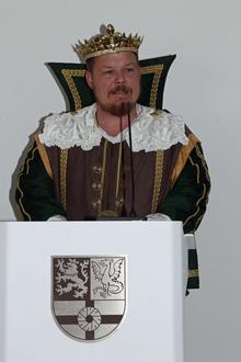Gambrinus stellte das Ehrenamt in den Mittelpunkt seiner Ansprache: Gambrinus, den König des Bieres, verkörperten in der Vulkanstadt bisher Hans Klöppel, Emil Stahl, Patrick Bartelmeh und Tim Herrmann. Sie gaben bzw. geben wie aktuell der 40-jährige verheiratete Familienvater aus Mendig dem sagenhaften Erfinder der Braukunst mit seinen Herolden Gestalt und Gewicht.