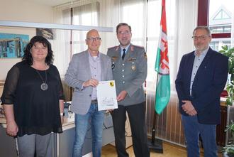 Bereichsleiterin Dagmar Luxem, Oberbürgermeister Dirk Meid, Oberst Dr. Ferdi Akaltin, Bernd Kreiser vom BwDLZ