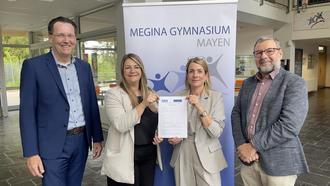 Nun mündete die langjährige Kooperation zwischen dem Megina-Gymnasium Mayen und der Debeka Versicherung Koblenz/Mayen in einer fixierten Patenschaftsvereinbarung. Darin festgehalten wurden die bereits bewährten Bausteine der Partnerschaft: So unterstützt die Debeka seit mehreren Jahren das Megina-Gymnasium Mayen unter anderem bei der Durchführung des Bewerbungstrainings in den Jahrgangsstufen 10 sowie 12.