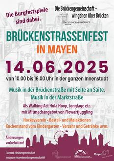 Mayen. Am Samstag, den 14. Juni, lädt die Brückengemeinschaft von 10 bis 16 Uhr wieder herzlich zum beliebten Brückenstraßenfest ein. Auch in diesem Jahr erwartet die Besucherinnen und Besucher ein buntes Programm für Jung und Alt - erstmals erstreckt sich das Fest durch die gesamte Mayener Innenstadt.