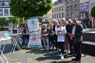 Auf dem Marktplatz kamen die Mitglieder des Mayener Forums gegen Gewalt mit den Menschen ins Gespräch.