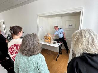 Mit Hilfe eines Rauchhauses erklärte Christopher Wittig die Gefahren eines Brandes – von der Rauchgasvergiftung bis zum „Durchzünden“.