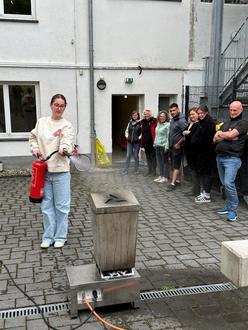 Die Teilnehmerinnen und Teilnehmer wurden auch in der Bedienung eines Feuerlöschers geschult.