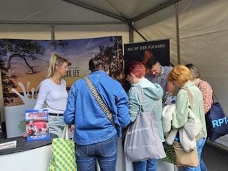 Die Nachfrage nach Angeboten in der Vulkanregion Laacher See war immens. So das Fazit nach drei Tagen Rheinland-Pfalz-Tag. „Besonders begehrt war das neue Urlaubsmagazin“, erklärte Julia Schweitzer, die zusammen mit Frank Neideck und Fabian Dötsch den Stand der Vulkanregion Laacher See betreute. Informationen rund um Unterkünfte, Wander- und Radwege sowie das Programm der „Nacht der Vulkane“ standen bei den Besucherinnen und Besuchern ebenfalls hoch im Kurs. „Der Rheinland-Pfalz-Tag war für unsere Ferienregion in jedem Fall eine gute Werbeplattform“, so die einhellige Meinung der „Botschafter“ der Vulkanregion.