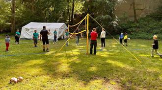 Samstagmorgen konnten dann die Kinder kommen. Schnell waren die Feldbetten in den Zelten belegt und dann ging es auf die große Wiese und in den Wald.