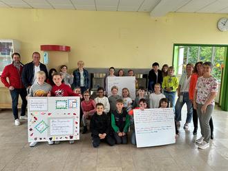 Ein überdimensionaler Brief von Schülerinnen und Schülern der Grundschule Pfarrer Bechtel gab vielleicht den finalen Impuls zwei Wasserspender in der Schule zu installieren.