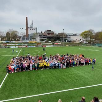 Bereits seit Wochen hatten sich alle darauf mit viel Freude und Spannung vorbereitet. Der Startschuss fiel zunächst für alle Viertklässler und Viertklässlerinnen pünktlich um 9:00 Uhr auf dem Kunstrasenplatz am Lavadome. Nach und nach gesellten sich die Schüler und Schülerinnen der anderen Jahrgangsstufen immer im Abstand von 15 Minuten hinzu, so dass um 9:45 Uhr alle Klassen sowie deren Lehrkräfte und viele Eltern hochmotiviert gemeinsam auf dem Platz waren, um Minute um Minute Spendengelder zu erlaufen. Angespornt wurden die Läufer und Läuferinnen vom hochmotivierten und gut gelaunten Stadionsprecher und Lehrer Simon Rüd.
