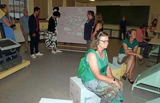 Vier junge Menschen erzählen in einem Interviewvideo ihre persönliche Lebensgeschichte und beantworten auf Knopfdruck auch verschiedene Fragen.“ Und zwar gerade so, als würden sie direkt vor ihrem Gesprächspartner sitzen. Dadurch falle es besonders den gleichaltrigen Besuchern der Ausstellung leichter Empathie zu entwickeln und sich teilweise mit den migrantischen Menschen zu identifizieren. „Wir haben an einem Karnevalssamstag in Ahrweiler einen Raum in ein Filmstudio verwandelt und die Interviewvideos gedreht“, erinnerte sich Ruth Fischer noch ganz genau. „Alle haben die gleichen Fragen beantwortet.“