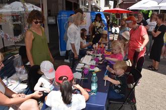 Dort lockten jede Menge an Bastel-, Mal- sowie Mitmach-Aktionen und Verzehrstände mit Süßem und Deftigem, so dass sich die Gäste dort gerne aufhielten. Während die Mamas und Papas schauten, was es in den angrenzenden Geschäften zu entdecken gab, griffen die Kids zu Stiften sowie Pinsel und Farben, um als kleine Künstlerinnen und Künstler aktiv zu werden. Die Zielsicherheit konnte außerdem mit Schüssen auf das Tor des Hockey-Club getestet werden.