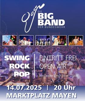 Am 14. Juli um 20 Uhr gastiert das bekannte und beliebte Showorchester der Bundeswehr in Mayen und rockt bei einem Open-Air-Konzert den Marktplatz. Dabei ist höchster Musikgenuss garantiert. Vom großen Orchesterklang bis zur solistischen Höchstleistung zeigt sich die Big Band der Bundeswehr von ihrer besten Seite.