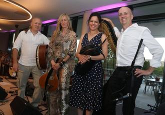 Chris Dawon (Pipes), Ciara Brennan (Gesang, Fiddel) Joanne McIver (Gesang, Bag- und Smalpippes), Christophe Saunière (Harfe) boten ein harmonisches Zusammenspiel. Das Quartett hat die Zuhörerinnen und Zuhörer in der Klostergaststätte Maria Laach fasziniert.