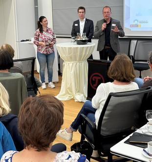 VG-Bürgermeister Jörg Lempertz (rechts) begrüßte zusammen mit seinem Pellenzer Kollegen, Sebastian Busch, die Teilnehmerinnen und Teilnehmer des Workshops im Ratssaal der VG Mendig. Die Leitung und Moderation hatte Gentiana Daumiller (links), Vorstandsmitglied „Lebenswandel e.V.“.