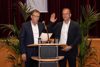 Joachim Plitzko (links), 1. Beigeordneter VG Mendig, ernannte Jörg Lempertz zum Bürgermeister der VG Mendig und nahm den Amtseid ab.