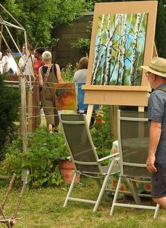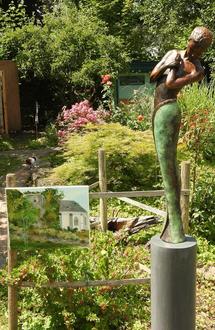 MAYEN. Am 24. und 25. Juni konnten in den Gärten am Ende der Mittelstraße über 190 Gemälde, Skulpturen und Keramik von den Künstlerinnen Véronique Fanti, Christiane Porcher, Ellen Welten-Louwers, Michaela Mintgen, Hannelore Spitzley, Leonie Wagner und Christina Weise zwischen Blumen, Bäumen und am Teichrand besichtigt werden.