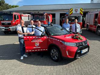 Zuletzt wurde ein ehemaliger Einsatzleitwagen - ein T4 Bus aus dem Baujahr 2000 - als Führungs- und Erkundungsfahrzeug vorgehalten. An diesem Bus häuften sich jedoch die Reparaturen und die - insbesondere bei Einsätzen auf der Autobahn extrem wichtigen - Warneinrichtungen waren nicht mehr auf dem Stand der Technik. „Eine Analyse hat ergeben, dass ein kleiner, geländegängiger SUV der perfekte Ersatz für das alte Fahrzeug wäre. Die Anschaffungskosten wurden vom Förderverein der Freiwilligen Feuerwehr Mendig und Sponsoren aufgebracht“, so Christopher Wittig, Wehrführer der Freiwilligen Feuerwehr Mendig. Das neue Führungs- und Erkundungsfahrzeug wurde jetzt im Vorfeld des Feuerwehrfestes vom Förderverein an die Verbandsgemeinde Mendig übergeben. Dafür fließt der gesamte Verkaufserlös des T4 Busses dem Förderverein der Freiwilligen Feuerwehr zur Refinanzierung zu. „Neben dem von der Verbandsgemeinde beschafften Kommando-Wagen des Wehrleiters und dem digitalen Einsatzleitfahrzeug ist das jetzt das dritte Führungskräftefahrzeug in der VG Mendig. Mein Dank gilt heute deshalb dem Förderverein und den Sponsoren. Wer sich nur die Einsatzfrequenz und die Schadenslagen der vergangenen Wochen anschaut, der kann sich vorstellen, wie schnell Einsätze vor Ort koordiniert werden müssen. Mit dem neuen Fahrzeug ist das auch zukünftig gesichert“, freute sich Jörg Lempertz, Bürgermeister VG Mendig, bei der Übergabe.