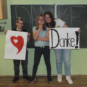 Danke sagen (von links) Levente Neradi, Anna-Lena und Lara Richter im Namen aller Kinder und Jugendlichen.