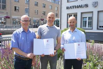 V.l.n.r.: Oberbürgermeister Dirk Meid, Michael Fuxius und David Rodriguez