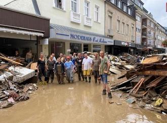 „Keiner wurde gerufen und trotzdem waren alle da“ – das Team der Verbandsgemeinde bei den Aufräumarbeit kurz nach der Flutkatastrophe im Ahrtal vor dem Modegeschäft „C’est Madame“ in der Poststraße in Bad Neuenahr.