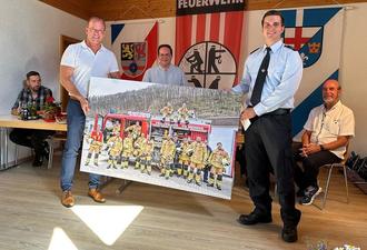 Und die Jüngsten durften sich auch im Rahmen einer Übung vorstellen. Der Mendiger VG-Bürgermeister Jörg Lempertz hatte für die Freiwillige Feuerwehr Volkesfeld zudem ein besonderes Geburtstagsgeschenk im Gepäck: ein großformatiges Foto von den Volkesfelder Einsatzkräften mit einem ihrer Einsatzfahrzeuge.