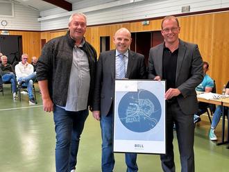 Der bisherige 1. Beigeordnete der Ortsgemeinde Bell, Udo Krayer (links), ernannte Stefan Zepp (Mitte) zum Ortsbürgermeister. Jörg Lempertz, Bürgermeister VG Mendig, gratulierte mit einem besonderen Ortsplan von Bell.