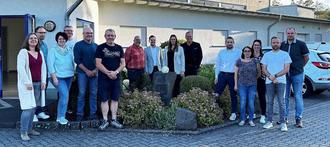 Der Thürer Gemeinderat und die Verwaltungsspitze der Ortsgemeinde mit Jörg Lempertz, Bürgermeister VG Mendig, vor der Thürer Mehrzweckhalle.