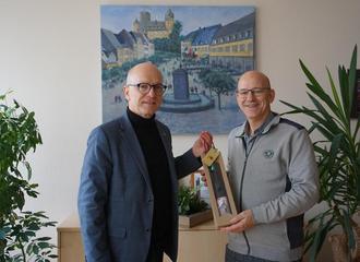 Da Werner Blasweiler bei der Verleihung des Wappentellers im Kreishaus nicht persönlich anwesend sein konnte, bedankte sich Dirk Meid als Oberbürgermeister der Stadt nachträglich beim Ausgezeichneten.