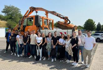 Dort angekommen wurde den Auszubildenden eine Führung auf dem neuen Gelände des Betriebshofs zuteil. Wolfgang Saur, Betriebshofleiter, stellte die neuen Räumlichkeiten, Aufgaben und Maschinen vor.