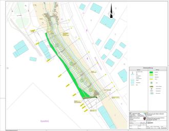 Darüber hinaus ist entlang der Wasserlinie die Pflanzung von Ufergehölz vorgesehen, welches das Ufer punktuell stabilisieren wird. Im hinteren Bereich der Renaturierung wird der Übergang auf die vorhandene Ufermauer, zum Schutz vor Hinterspülungen, ebenfalls mit Wasserbausteinen gesichert. Zur Abgrenzung zum Nachbargrundstück wird ein Heckenstreifen bepflanzt.