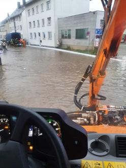 „Ich bin ausgesprochen stolz auf die Mitarbeiterinnen und Mitarbeiter, welche bereits in den Tagen vor der Katastrophe über das normale Maß hinaus gearbeitet haben. Hier war jeder einzelne mit Herzblut bei der Sache, um Schaden von unserer Heimatstadt und den Bürgerinnen und Bürgern abzuwenden. Bereits 24 Stunden nach Eintritt der Katastrophe waren alle betroffenen Straßen wieder befahrbar. Zudem musste noch die eigene Betriebsstätte im gesamten ausgeräumt und gereinigt werden. Im Anschluss unterstützen wir noch die Aufräumarbeiten im Ahrtal“, so Betriebshofleiter Wolfgang Saur.