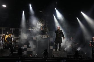 Die Kommunikation mit dem Publikum beschränkte sich zu Beginn des Konzertes auf das Wort „Mendig“. Das tat dem Ganzen jedoch keinen Abbruch: „Völkerball“ und ihre martialische Musik mit viel Feuer und ausgeklügelten Licht- und Feuereffekten wurden frenetisch gefeiert. Kein Wunder, denn alle Songs wurden von den Musikern auf der als monströs zu bezeichnenden Bühne perfekt performt.