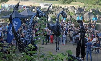 Drachen und ein Stelzenmann hatten auch die Festwiese bevölkert