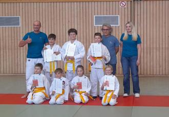 Wir gratulieren zum Gelbgurt: Julius Alter, Emilio Hepper; Gelb-Orange Gurt: Max Tesche, Meera Hertel, Cornelius Leich, Marius Tousmari, Tarek Myschik.